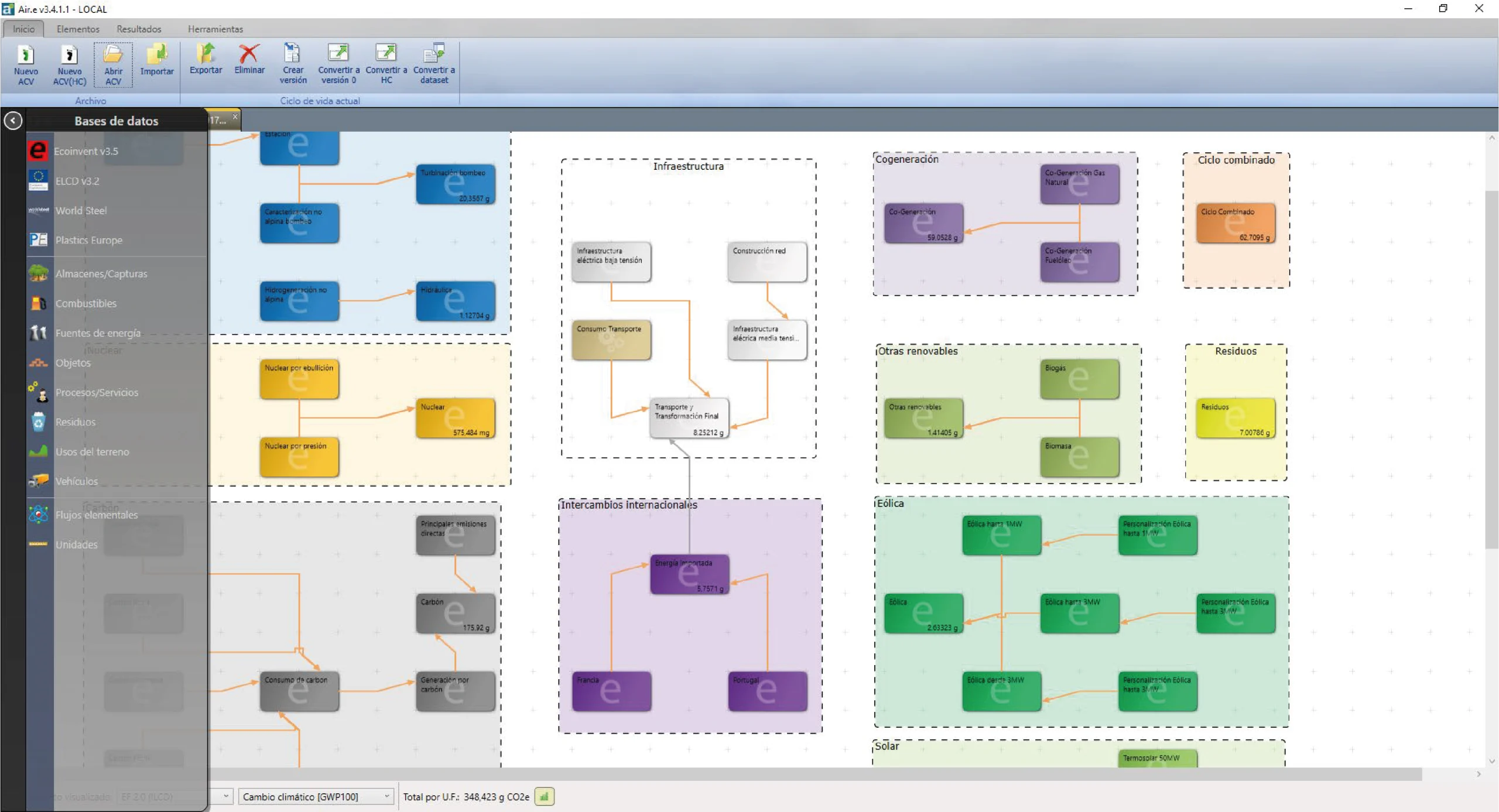 Air.e LCA es un software multisectorial que te permite calcular, analizar y reportar impactos ambientales de productos, servicios y organizaciones bajo metodologías y normativas internacionales, con una interfaz visual y bases de datos reconocidas para resultados fiables.